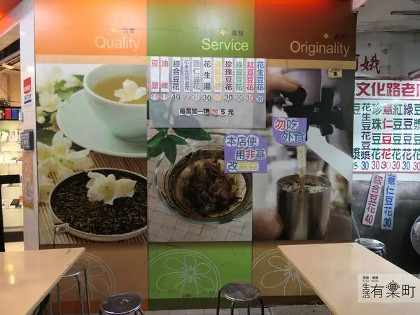 阿娥豆漿豆花使用的非基改黃豆製成,豆花有多種口味可選,有紅豆、珍珠、綠豆和花生,都是30元銅板價,另外還有綜合豆花40元,多加一樣配料則是加5元,平實的價格,一人點一碗來嚐嚐吧。此外,還有豆漿單點和古早味的花生湯加油條可以試試看,也都是受到大家好評的招牌餐點。