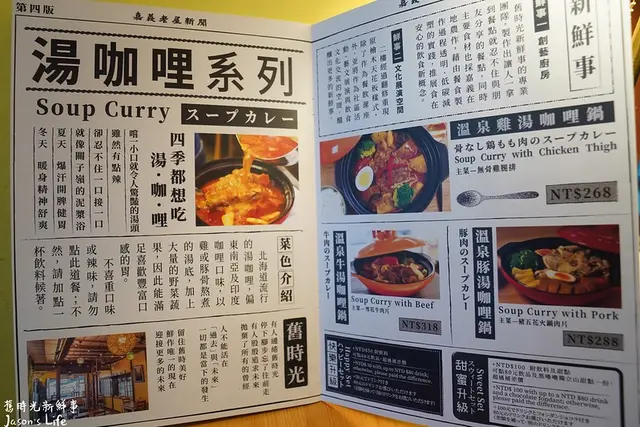 菜單在這,主食分為檜木風味系列、咖哩系列、湯咖哩系列等等