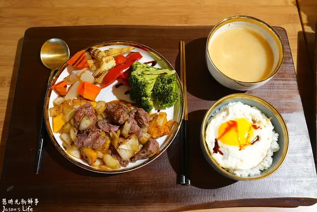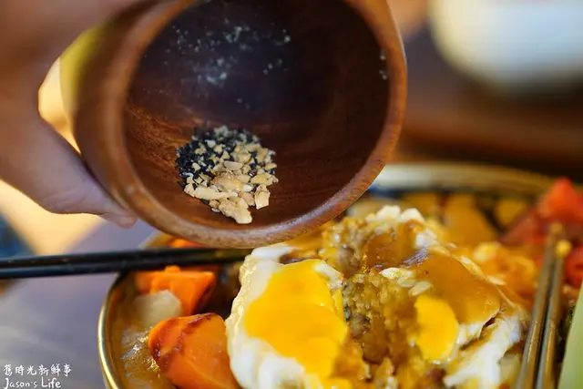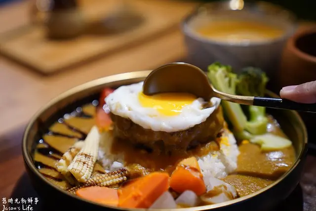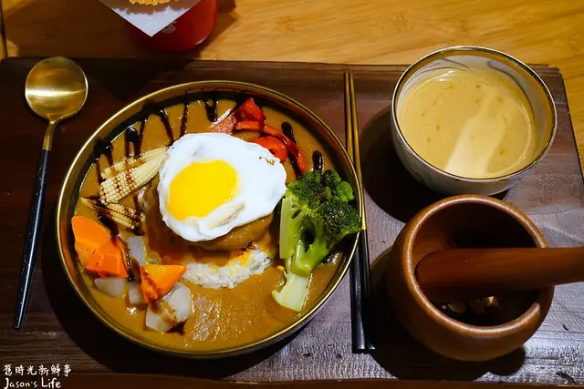 推薦水果香甜的湯咖哩,豬油拌飯上加了一顆邪惡的半熟蛋,忍不住會扒飯