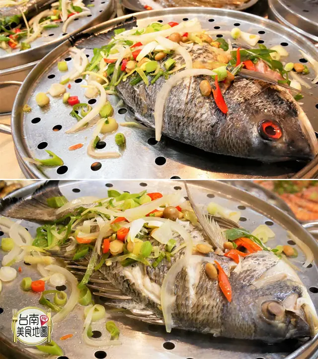 位在古町畚渡假山莊前的【蒸鱻屋】!老闆每天不辭辛勞的採買新鮮海產,並因每日採買到的漁貨不一定,故提供無菜單的蒸鮮魚料理喔~每桌$3500元,就有8道菜色!還有肉燥飯免費供應吃到飽喔^∀^來電訂位(05)206-6575即享超鮮蒸魚美食喔^^~ ※鮑魚/龍蝦等海產,另以時價加點※