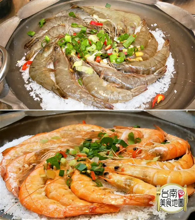 ▲【特選白蝦】(每日採買海產不定,故菜色不一定都會一樣喔~) 特地挑選過的白蝦,個頭個個不小~用鐵盤高溫鹽烤鎖住鮮味不外流,肉質口口吃來超鮮脆彈牙的呢ლ(´ڡ`ლ)