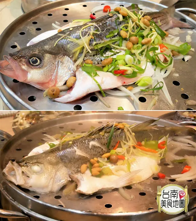 ▲【珍珠石斑】(每日採買漁貨不定,故菜色不一定都會一樣喔~) 端上桌都是新鮮,用破布子、辣椒、洋蔥、蔥、薑、鹽等簡單調味,再放置火鍋上蒸熟~鮮甜美味入口即知!