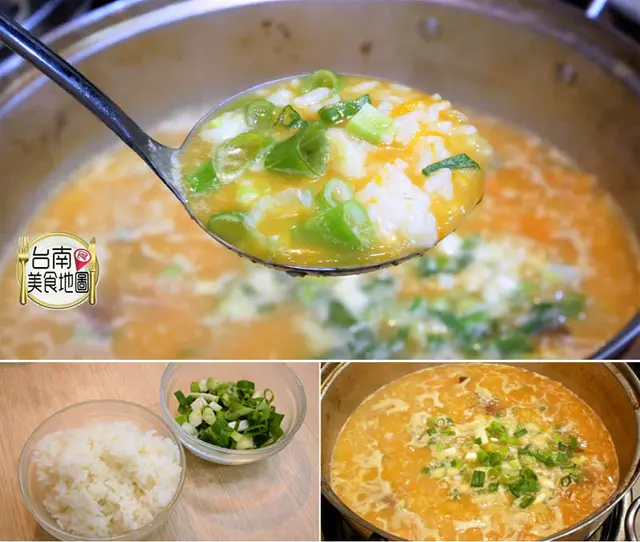 ▲店內亦有提供白飯及青蔥可煮粥喔!飯粒煮的濃稠軟綿,最後再灑上青蔥~ 台式雜燴粥喝來超濃香順滑,本來是撐到不行的肚皮也硬是要喝個一碗才滿足ヾ(≧▽≦*)o