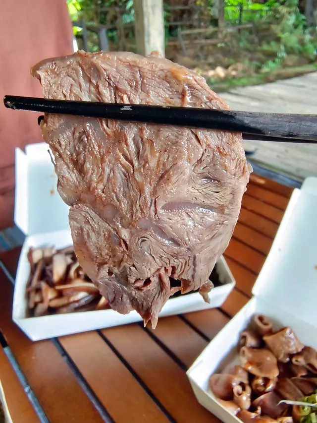 我覺得處理得很乾淨,吃起來沒有過多的油脂、口感也很Q彈,配上一大口嫩薑絲,果然是黑白切的最愛,沒想到牛肉麵店也能吃到