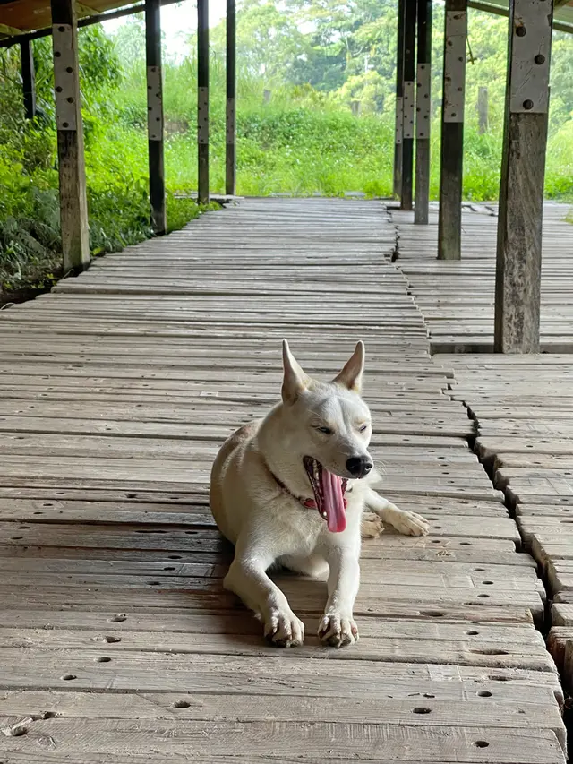 ▼打個岔,我們來到雨棚又遇到牠,被我們餵了一小口牛腱後,一整天都圍著我們不走🤣