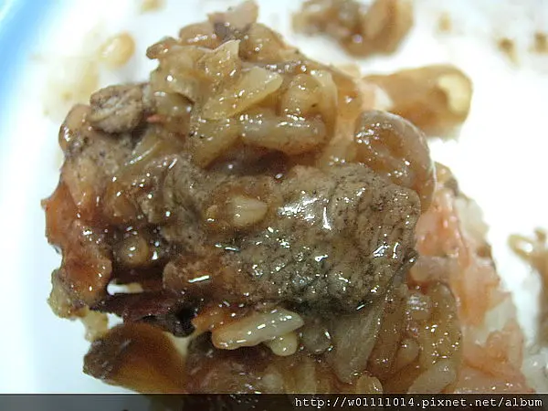 米糕上面還有肉塊部份,吃起來還蠻好咬的,不會覺得太老咬不動!