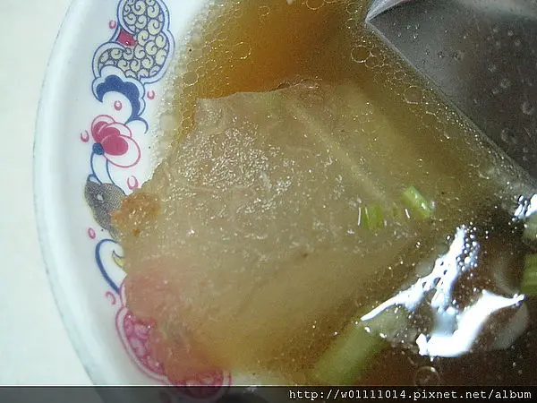 有三塊排骨以及一兩塊冬瓜塊,湯頭看起來好像很油~其實喝起來還OK