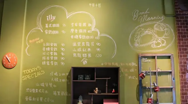 早晨小姐的MENU寫在牆壁上 手寫的感覺更讓人感到親近與溫度