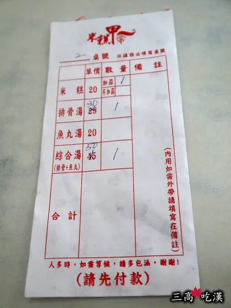 在門口拿了點菜單,除了米糕就是湯品,我是糯米控,但為了接下來的小吃行程,