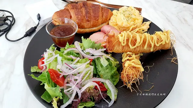 麵線蝦.培根.鮮奶蛋.可頌.沙拉