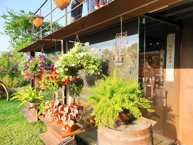 貨櫃屋的一樓是印簿玩,二樓是咖啡屋