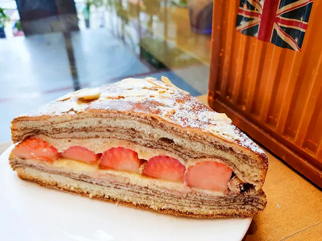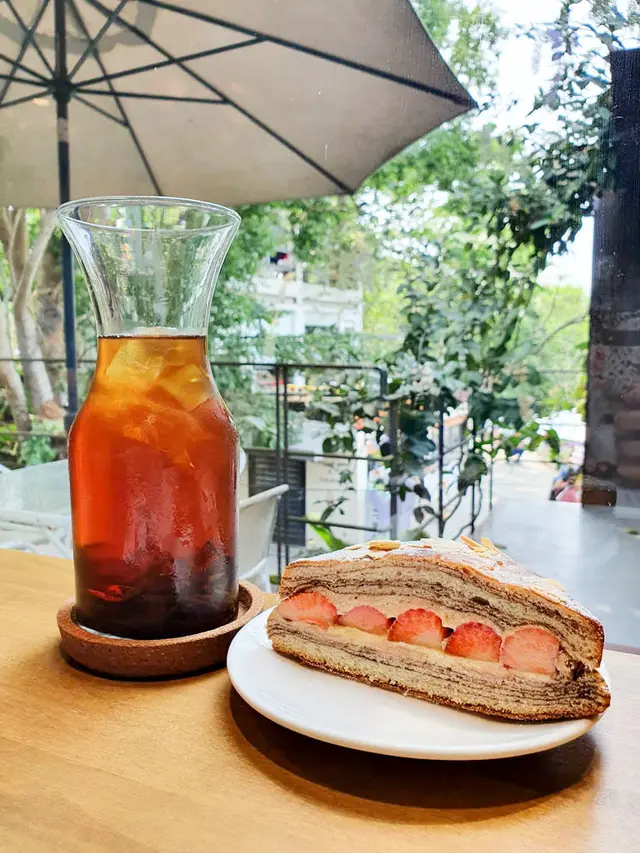 不甜膩,搭配冷泡紅茶很對味,不是想像中的千層口感有點可惜,蛋糕本體口感很像小時候常吃的大理石麵包