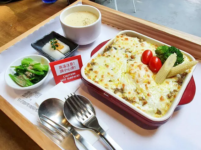 還好我們有先點塊蛋糕止飢,咖哩噴香夠味,精緻的胡麻醬佐蔬菜、金桔醬醃蘿蔔、玉米濃湯,醬子的餐點內容cp值很高