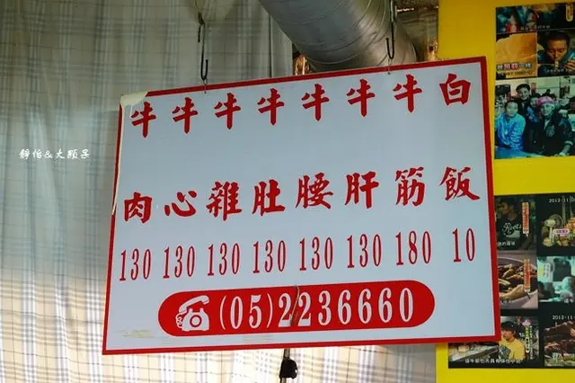 就是牛筋、牛肝、牛腰、牛肚、牛心、牛肉及牛雜等牛牛牛都是牛,除了牛之外就是白飯了!