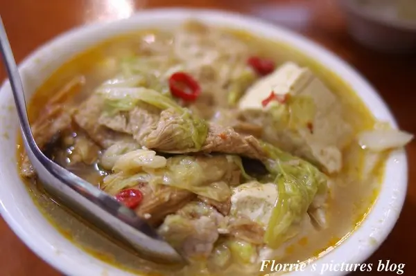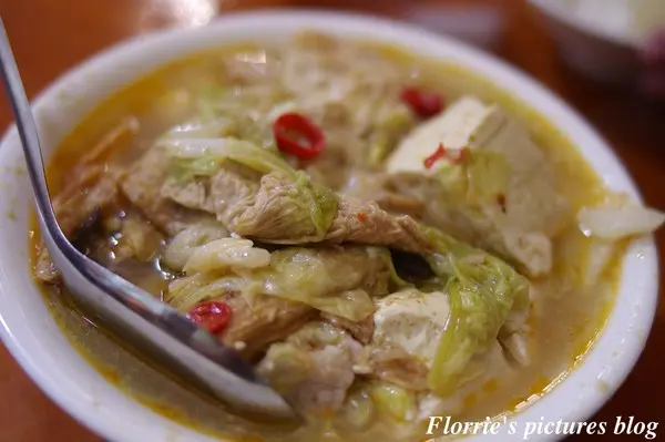 沙鍋菜: 一上桌鮮甜的香氣帶著沙茶香味直撲而來,滿滿的一大碗好料光看就讓人食指大動,雖說,表層浮著一層油亮的油光令人不禁擔心喝起來是否會有油膩感,但小嚐一 口後,鮮甜的湯頭帶著迷人的沙茶與扁魚香氣在口中四溢,豆皮更是豆香味十足且吸飽了湯汁的鮮美,豆腐由於使用了傳統板豆腐,所以吃起來軟嫩中更是有著湯頭 的鮮甜與豆腐本身的豆香味在口腔裡纏繞,白菜更是軟嫩且滑口,尾韻帶點極微細的辣度更是令人一口接一口直到碗底朝天還意猶未盡。