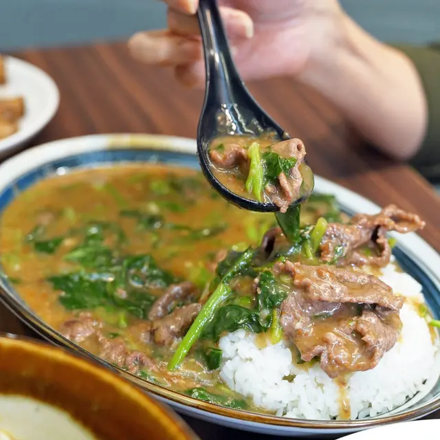牛肉和芥蘭的比例適中,每一口有肉有菜,牛肉嫩又大片,吃肉的感覺真讚!調料以沙茶為主,整體沙茶香氣濃郁,非常下飯開胃!我平常食量算大(一餐可以吃掉一塊大雞排+一碗鍋燒意麵),但這盤牛肉燴飯還是讓我吃得很飽,份量很足、非常實在。