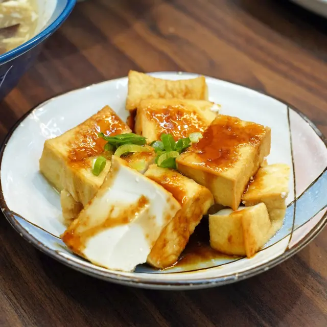 ▲油豆腐軟嫩多汁搭配蒜蓉醬油膏。