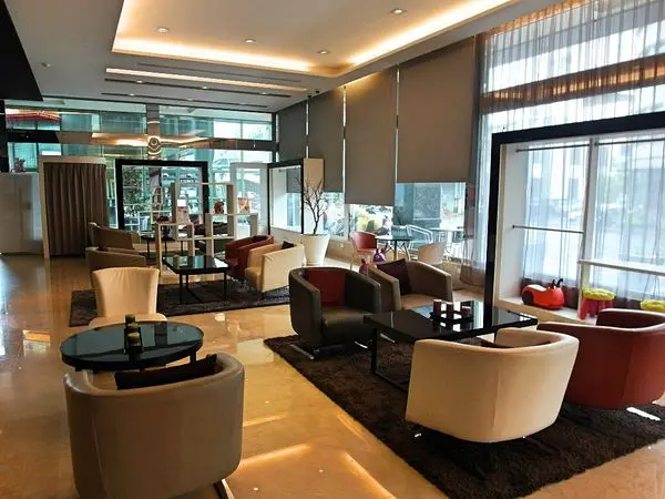 採光較好,座位是沙發,女孩今天選在餐廳內用餐