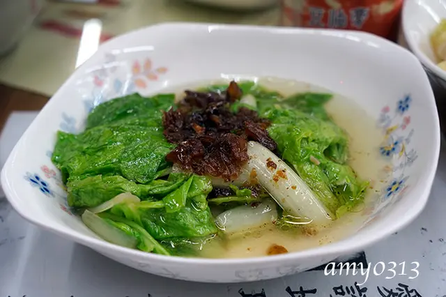 燙青菜點菜時在菜單的燙青菜上寫了2,上桌時發現兩種燙青菜不一樣耶~,這點有貼心到。燙青菜加了油蔥,蠻香的。