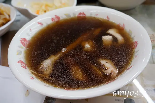 鴨腿湯店家細心地把鴨腿去骨切塊後放入湯裡,這裡的當歸湯頭真的很好喝,當歸的濃淡恰到好處,非常討喜。