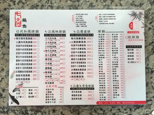 七品鍋物,整個空間和舒適度都很不錯,而且肉品都是有認證的!!
