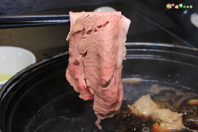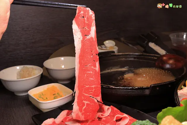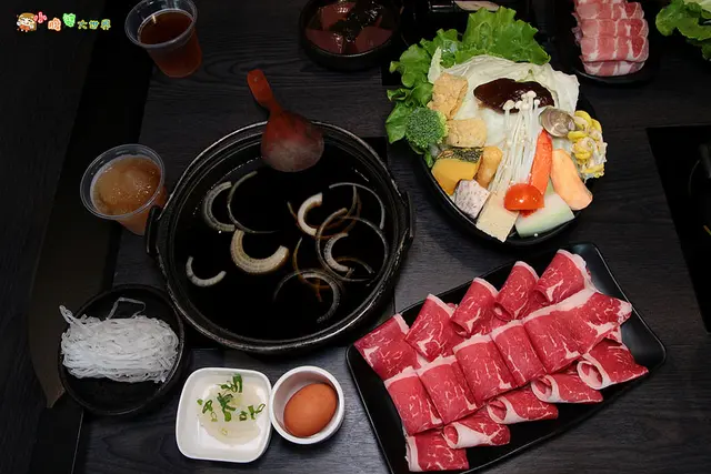 七品壽喜鍋:選用日本醬油、糖、味醂熬煮的湯頭,建議搭配蘿蔔泥食用。