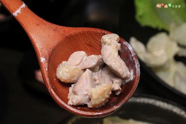 土雞肉相較沒有豬肉跟牛肉的分量多,這道更適合女孩兒點(火鍋輕熱量)