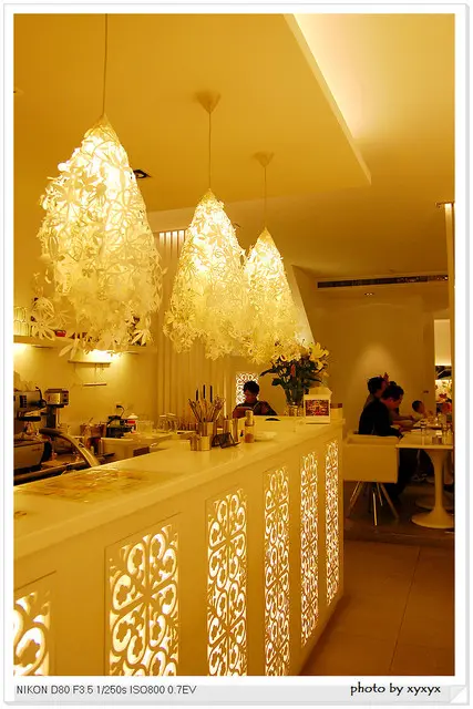店內的座位並不多,只有甜點櫃前的一排座位,以及後面的幾張桌子