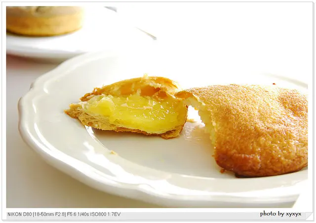 裡面包裹著新鮮檸檬餡....完美不膩的酸度~口感溼潤...