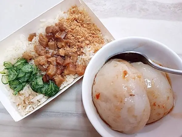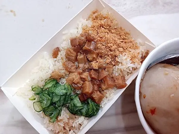 我個人覺得米糕的價格偏貴,淋上肥嫩的肉燥、鋪上小黃瓜切片,賣相上蠻不錯的