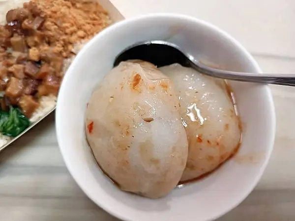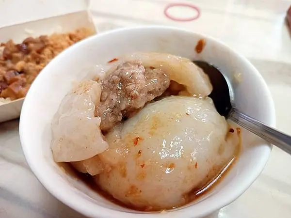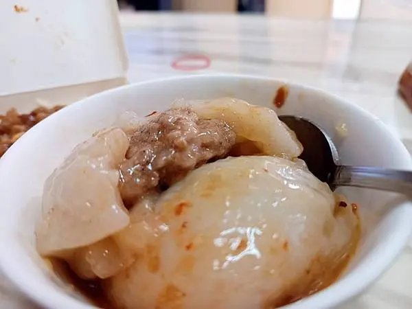 哈囉肉圓的肉圓皮有著一定的厚度帶Q且細緻,不會有過於軟爛的口感
