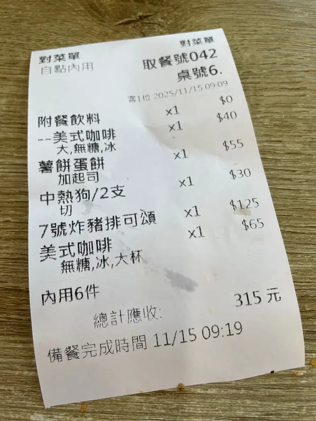 我們點了「薯餅蛋餅」、「中熱狗」與「日式炸豬排可頌」,三樣餐點都是我們期待的美食。