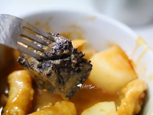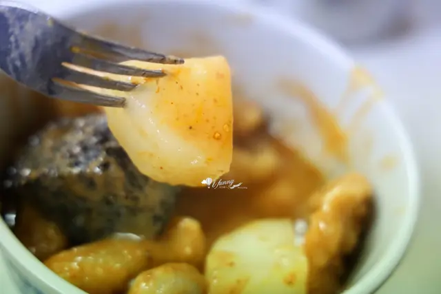 這個甜不辣條,口感比片狀還Q,沾滿醬料後更是令人一口接一口。
