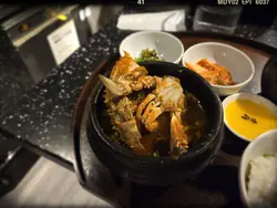 原本主菜係醬油蟹,但訂位時講明家人唔食生蟹,所以就轉咗做熟咗嘅螃蟹海鮮湯,另配魚肉石鍋飯。