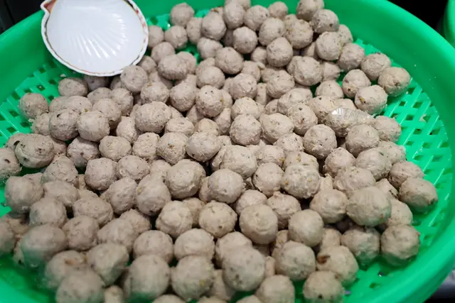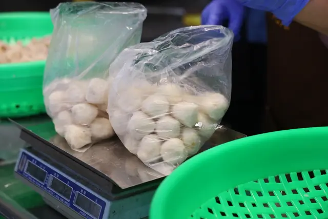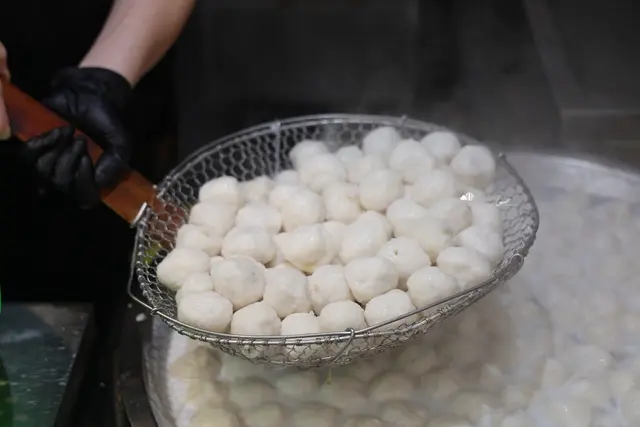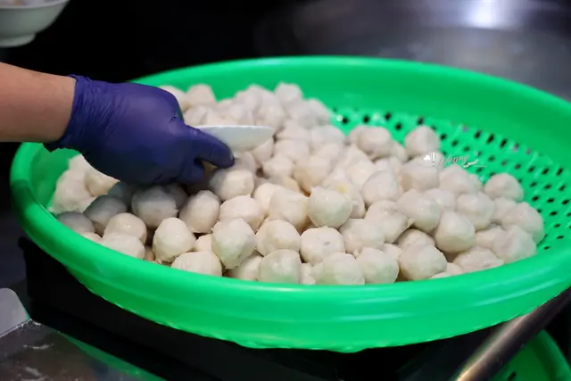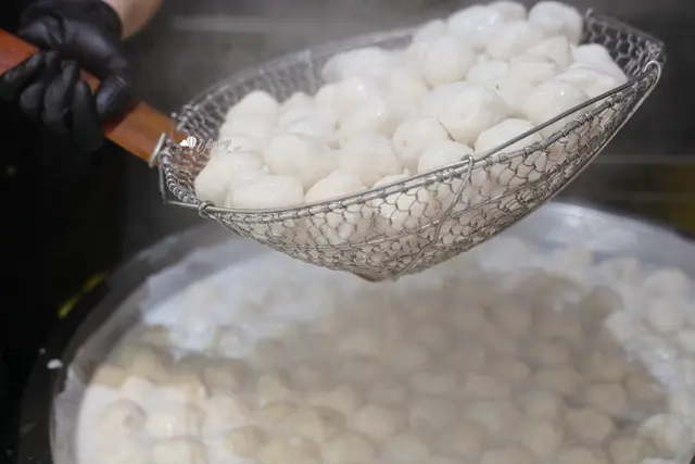 新鮮煮熟的魚丸,沒經冷凍,且不添加修飾澱粉,看起來就特別好吃。