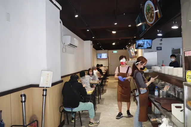 永富魚丸店寬大的店面,將大部份留給廚房及作業區,座位區則是長型靠牆,走道明亮乾淨。
