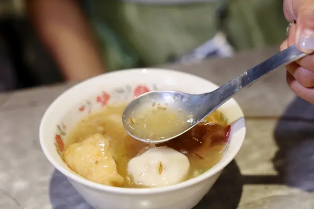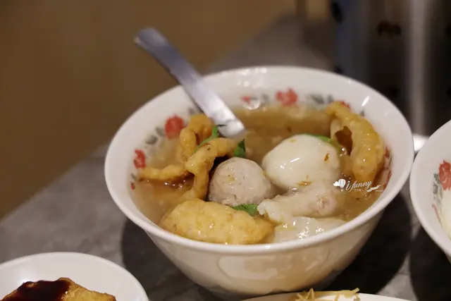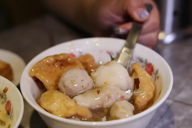 如果想一次攻略永富魚丸店的產品,肯定要點這個招牌湯,可以一次吃到福州魚丸、香菇丸、魷魚羹、赤肉羹及魚酥。
