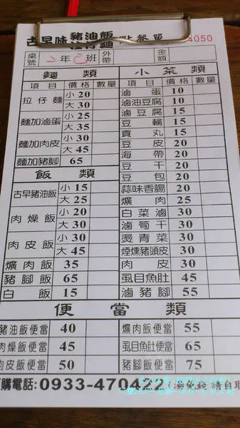 不久前就曾注意過這間店.當時他沒有招牌 卻常常看到有人潮 這回又特意的經過.其實是想吃午餐啦 ㄟ......多了個紅布條.東森新聞有來採訪過 那這二話不說.進來吃吧! 點完餐後.想說也沒幾桌人. 怎等了有一會功夫了 我們的餐呢?怎還不來 原來是近中午12點.打電話來外帶的還蠻多的 等的空檔.就來拍個照囉! 我不也曾經在這課桌椅讀書.吃便當.打瞌睡嗎? 點菜單 坐在2年己班 點了 拉仔麵$20 豬油拌飯$15 豆輪$15 滷筍乾$30 2人吃只花了$80 店家沒賣湯原來是湯免費供應在那請自助 拉仔麵. 麵條是屬於比較大板.吃起來跟油麵不同.沒有粳的味 搭配油蔥肉燥及蒜泥這樣吃起來味道很夠 不過待會要去買EXTRA 豆輪 媽媽的味.小時候最愛吃的 還記得以前讀書的時候.三餐都是要在學校餐廳吃飯 有時候沒有這道菜時 常常去廚房問煮飯的阿姨.明天有要煮像車輪的那種東西嗎? 滷筍干 還不錯.筍乾的酸味有.沒有自來水味 豬油拌飯 偶爾想懷念的滋味 一碗$20的麵. $15的豬油拌飯 分量對女生來說是剛好 再付$10就能升級加大 2人一餐吃下來只花了$80元.…查看更多
