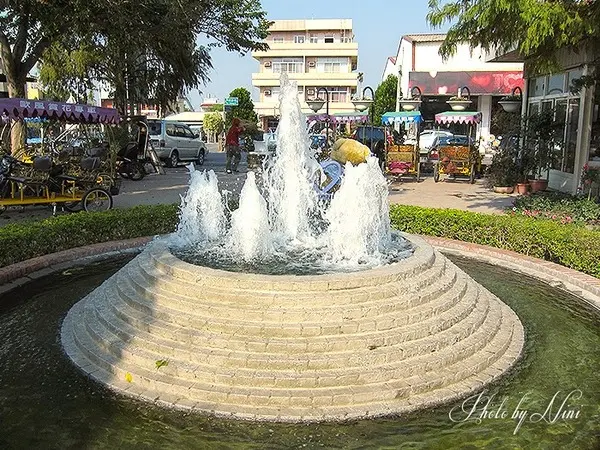 後方有個水池會有不同的水舞噴泉變化