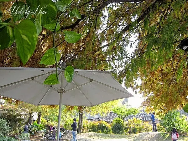 或是穿過木造拱門到後方還有個後花園喔