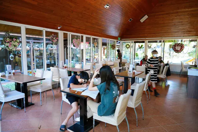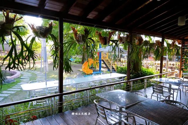 田尾最有名的景觀餐廳莫過於綠海咖啡館,原本有想安排,但後來還是決定去【全得玫瑰莊園】,歐式木屋加上一大片的庭園造景,還有草皮、魚池及溜滑梯,低消只要90元,目前僅週六及週日營業