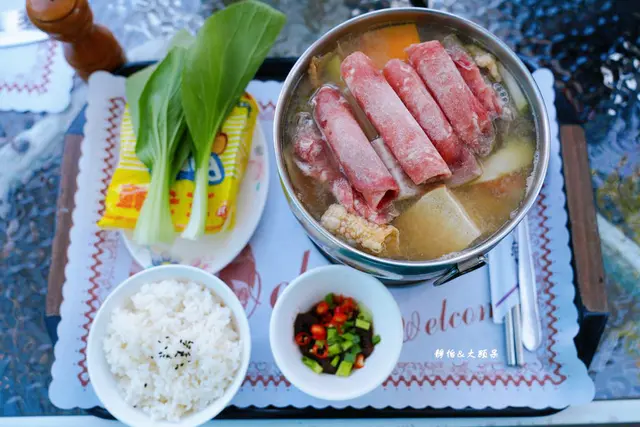 提供義大利麵、簡餐、火鍋、炸物、鬆餅及飲料等,飲料最便宜一杯90元,餐點單價就跟一般景觀餐廳差不多