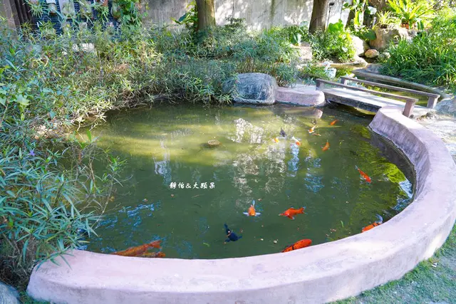 後方有一片草皮及水池,還有小小的溜滑梯,有空間可以放風孩子