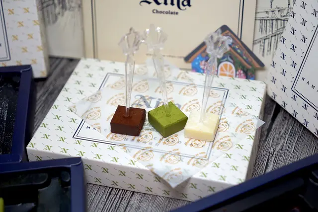 babe選擇了三款最受歡迎的口味:85%頂級生巧克力、36%抹茶生巧克力、檸檬塔生巧克力
