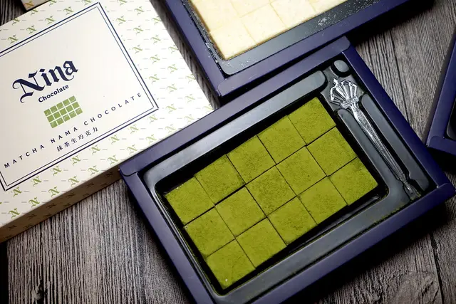 日本抹茶粉與白巧克力的組合、一點茶香的苦透過白巧克力潤滑風味