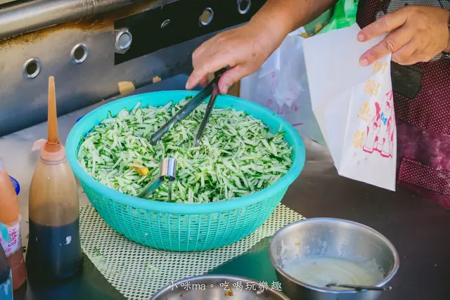 澎湖美食推薦,這次為了澎湖花火節特別住了觀音亭外的彩虹文旅,沒想到澎湖超熱門的郵局蔥油餅就在文旅隔壁條巷子,CHECK IN完當然要衝去買,郵局蔥油餅就位在惠民一路上的鐵皮矮房,外觀並不起眼,每天14:00開始營業,經過絕對會被長長的排隊人龍給吸引,最特別的吃法就是蔥油餅加小黃瓜,小黃瓜絲還免費任你加,加點自製辣椒醬油,一個人可以吃兩塊沒問題啦