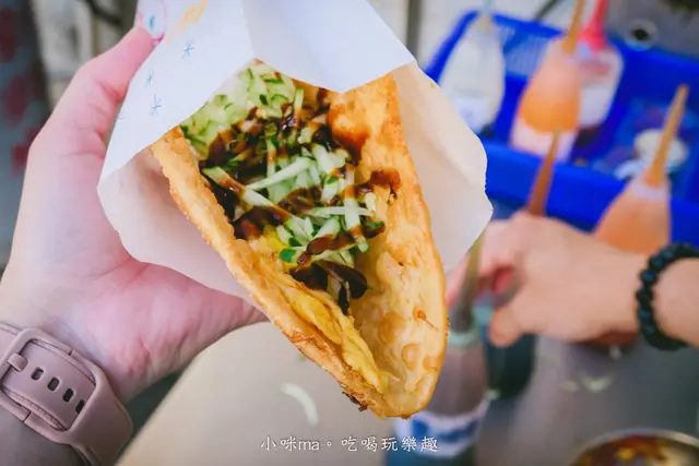 一咬下下去酥脆度真的讓我驚喜,配上爽脆的小黃瓜真的絕配,沒加辣得連小朋友都會喜歡,如果你可以吃辣一定要加他的辣椒醬油,這才是靈魂關鍵,也會比較夠味,之前來澎湖吃過很多排隊小吃我都覺得還好,這個郵局蔥油餅我給過,他真的必吃~就算是排隊也要吃