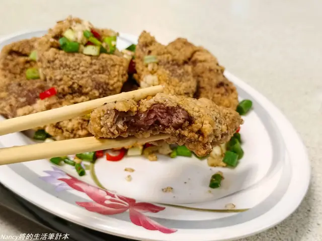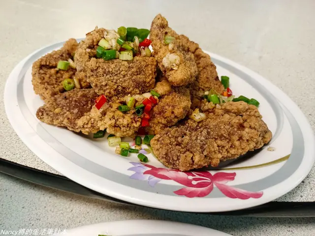 一塊塊頗為大塊的牛小排,裹粉油炸後,爆炒蒜末、蔥末與椒鹽