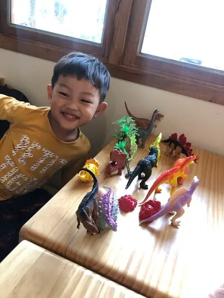 哥則是翻了家裡也有的恐龍組,同樣玩得不亦樂乎