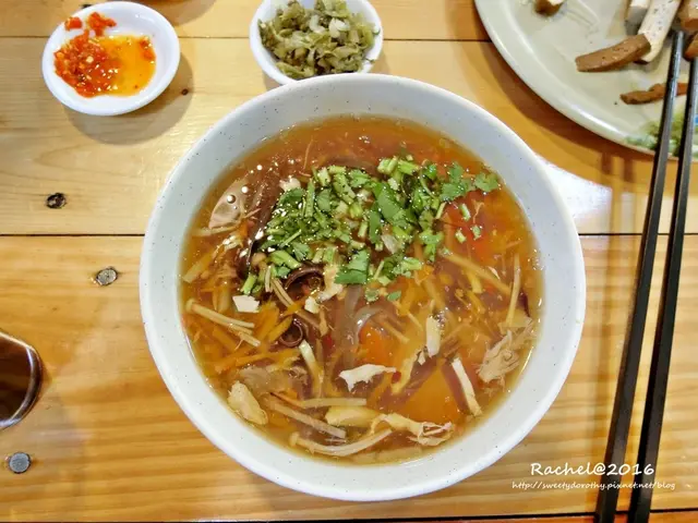 這個酸辣湯比較像是羹湯,裡面還有加肉羹很特別,不過口感比較偏重酸,沒有辣的口感,喜歡重口味酸辣的人可能要再自己加一些調味~